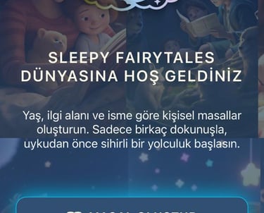 Çocuğunuzun ismine özel, büyülü masallar oluşturmak için yapay zeka teknolojisini kullanır.